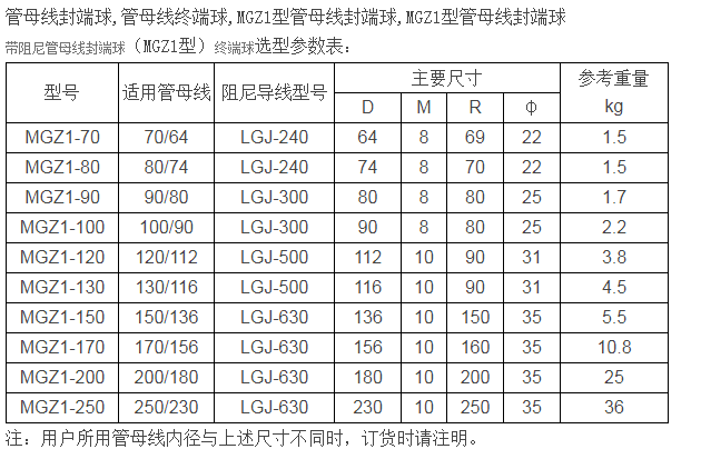 帶阻尼管母線封端球(MGZ1型)